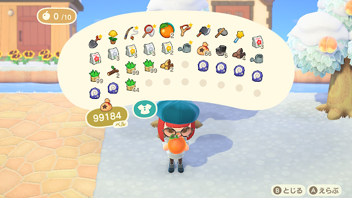 과일은 너구리 상점에서 매각하면 벨을 입수할 수 있다. 금책으로서 간편하므로, 벨 벌고 싶은 경우는 섬중의 과일을 모아 매각하자.